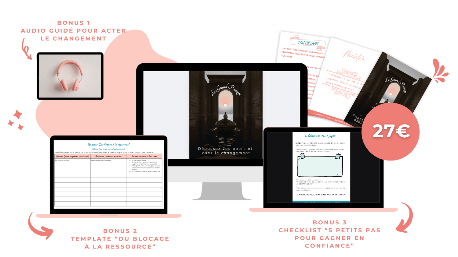 Et c'est exactement pour ça que j'ai créé Le Grand Passage pour vous aider à apaiser la peur, retrouver votre sécurité intérieure et transformer le doute en mouvement, afin que vous puissiez oser le changement avec confiance et douceur.